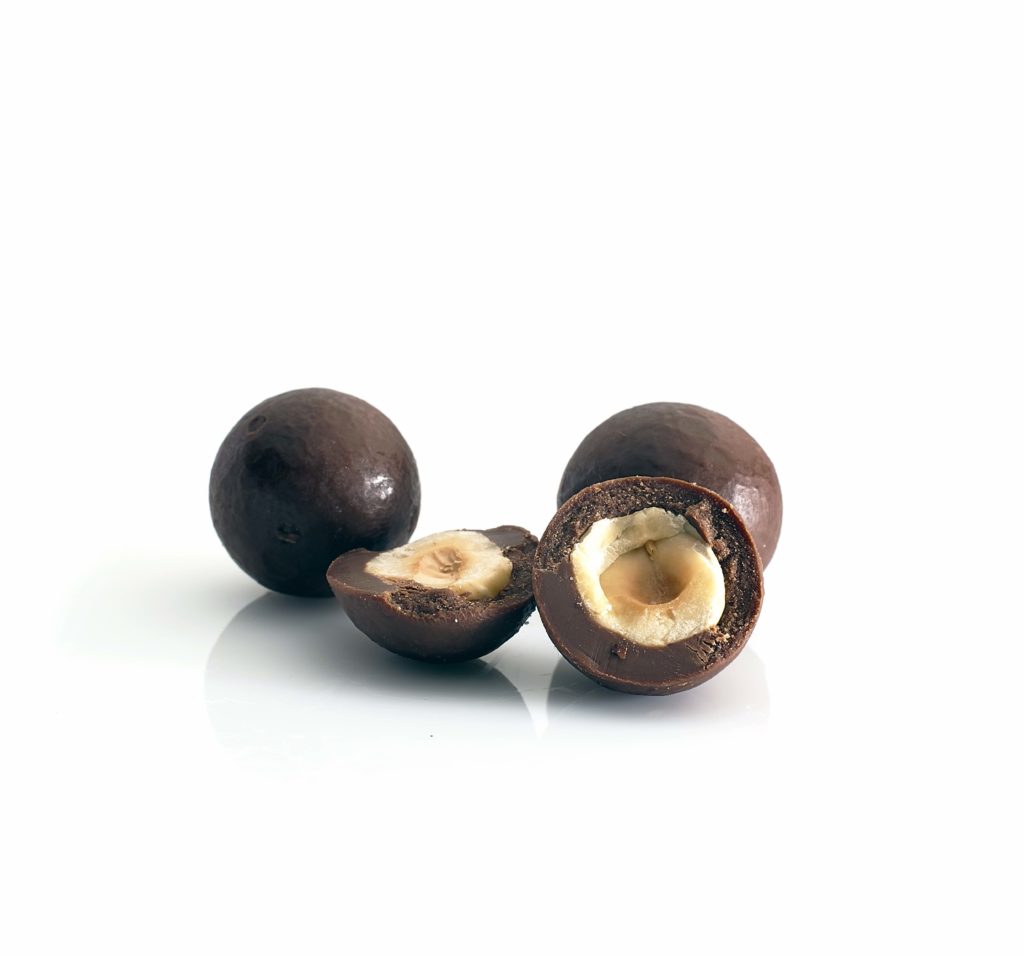 Pyszne orzechy laskowe zanurzone w czekoladzie kokosowej